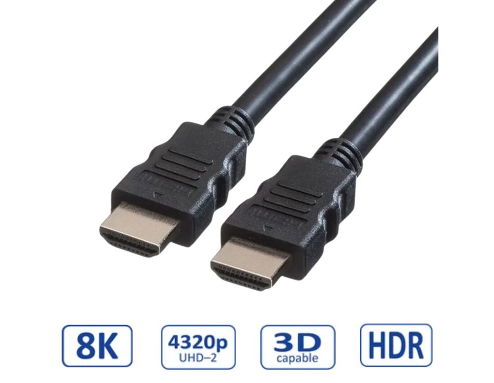 Roline VALUE Ultra HD 8K HDMI v2.1 kabel sa mrežom, M/M, crni, 2.0m
