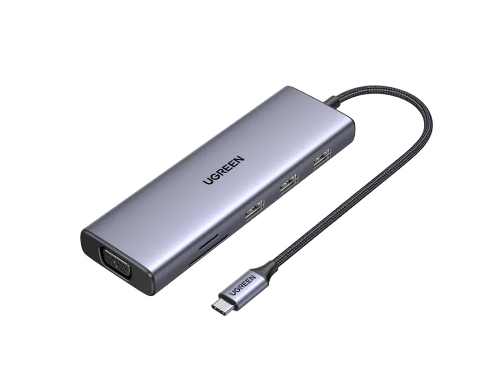 UGREEN 10-portni USB-C HUB 3×USB-A 3.0, 1xUSB- C PD, VGA, 4K, HDMI, 1xG-LAN, 1xSD, 1xTF, 3.5mm, sivi