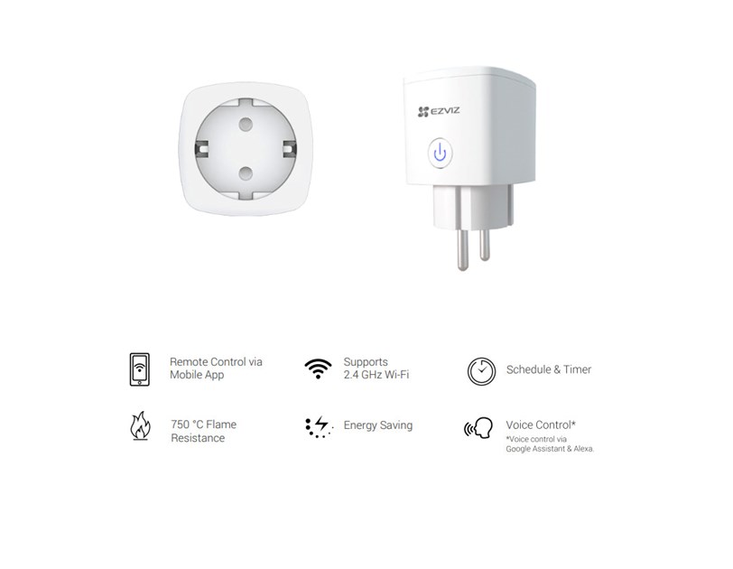 EZVIZ WiFi Smart utičnica, 10A/2300W, tajmer, EZVIZ app, glasovna kontrola - Alexa & Google Home, Wi-Fi kontrola (T30-B)