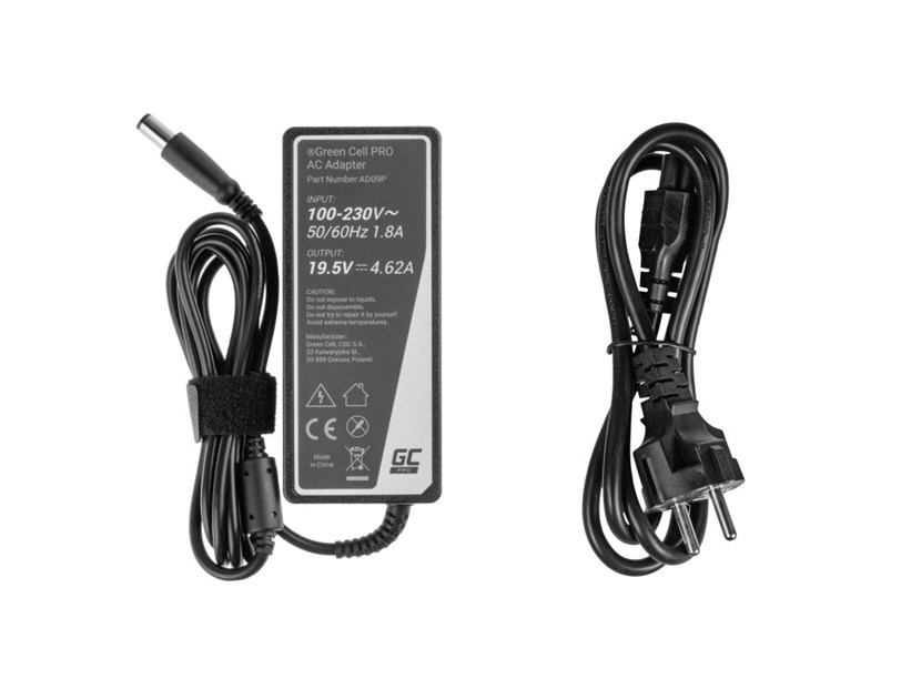Green Cell (AD09P) Dell AC adapter 90W, 19.5V/4.62A, 7.4mm-5.0mm