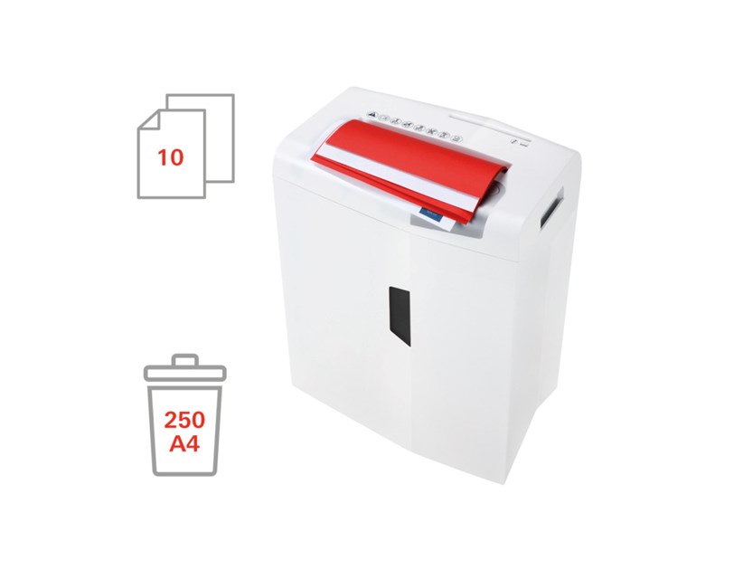 - An integrated light barrier automatically starts the device when paper is introduced into the feed and it automatically stops after shredding is complete.