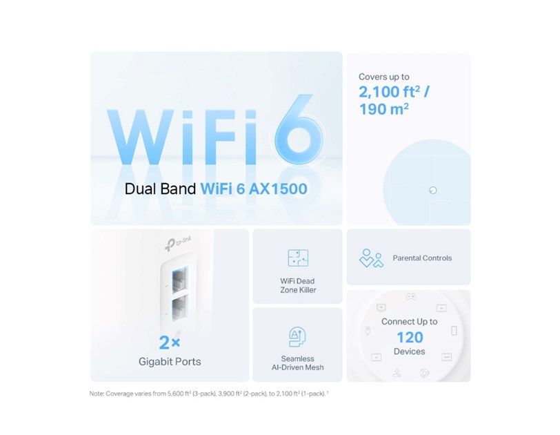 - TP-Link Mesh tehnologija: opcijski Ethernet backhaul radi zajedno kako bi povezao Deco jedinice za pružanje besprijekorne pokrivenosti