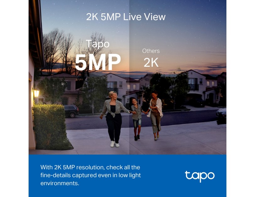 - Always know what happens in front of your door through the Tapo app. With the starlight sensor and 2K 5MP resolution, check all the fine details captured even in low-light environments.