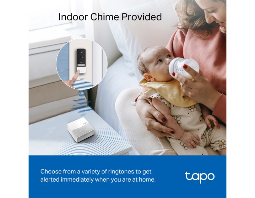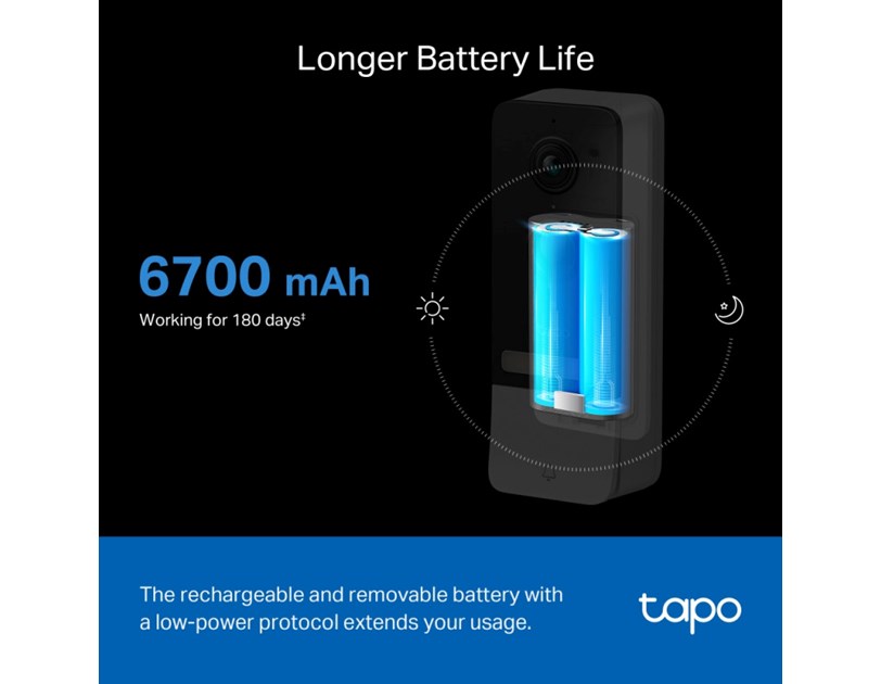 TP-Link Tapo Smart bežično zvono za vrata s video kamerom 2560×1920px, 2K 5MP, 160° dijagonalno, dvosmjerni audio, IR LED, detekcija pokreta, IP64