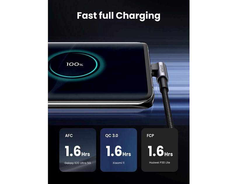 - With an innovative 90 degree L design, UGREEN USB C cable is more convenient and more comfortable for playing games, watching videos, reading e-books when lying on the couch or bed while charging. (Note : The maximum allowable thickness of the case is 2mm/0.08 inch)